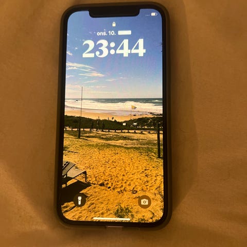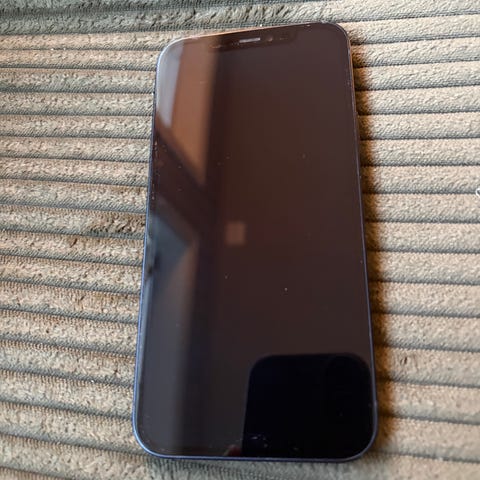 Apple iPhone 12 med 128 GB lagringskapasitet i svart farge. Telefonen har en skjerm med god oppløsning og et dobbelt kamerasystem på baksiden. Batterikapasiteten er målt til 86 %. Bruksmerker langs kantene, ellers helt fin foran og bak.