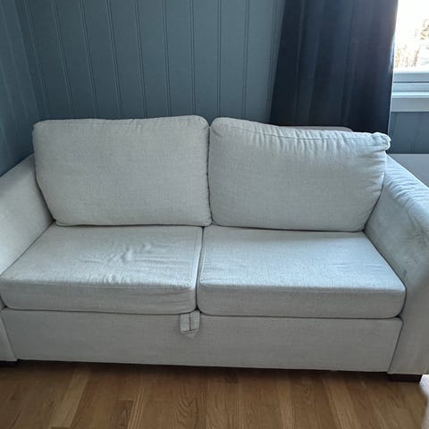 Godt brukt, men pen sovesofa( dobbeltseng)som gjøres om med en enkel håndvending.