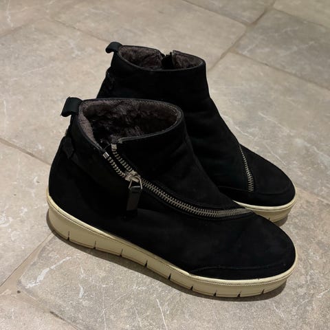 Nude of Scandinavia vinterstøvler i størrelse 37. Støvlene er svarte med glidelås på begge sider. myk og varm fôr innvendig. Sålen har mønster for bedre grep. Egnet for bruk i kalde værforhold.