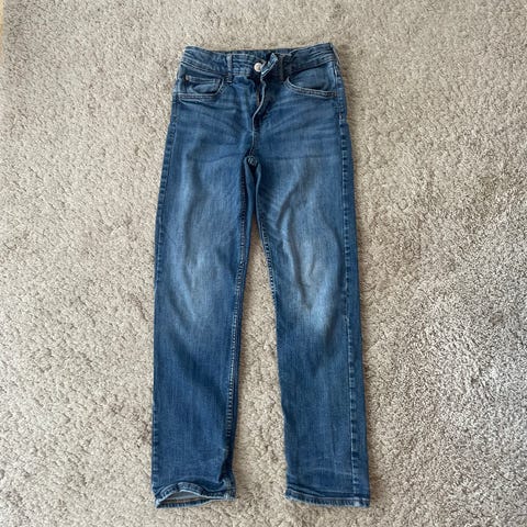 H&M Loosefit denimbukse i blå farge, størrelse 152, designet for gutt. Laget av denim materiale med justerbar midje for bedre passform