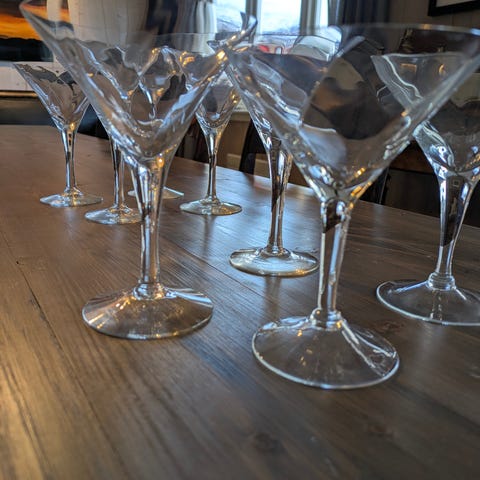 Kosta Boda glass i klart glass. Settet inneholder flere typer glass, egnet for ulike drikkevarer. Meget elegant å se på.