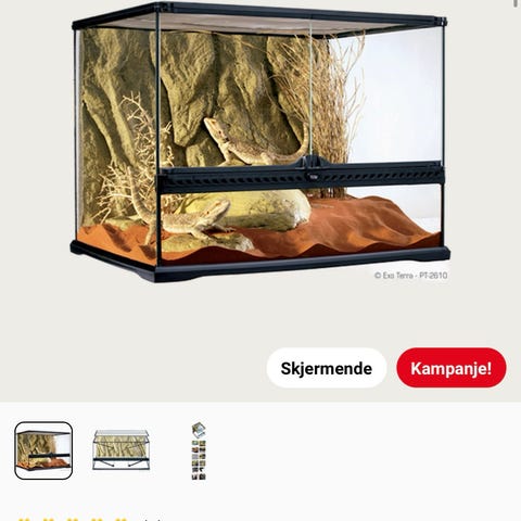 grunnet overgang til større terrarium. Her har det bodd en Melkesnok i 4 år. Bakgrunnen er laget av skum og isopor så den er ikke mulig å fjerne. Bitte lite hull på toppen som vist på bilde siden jeg har brukt varmelampe ovenifra, men om du skal bruke varmematte så er hullet så lite at ingenting kommer seg igjennom uansett. Jeg tømmer terrariet og vasker/renser det før det hentes. Kostet 5500,- nytt i 2022. Selges super billig siden det tar opp plass her i huset.