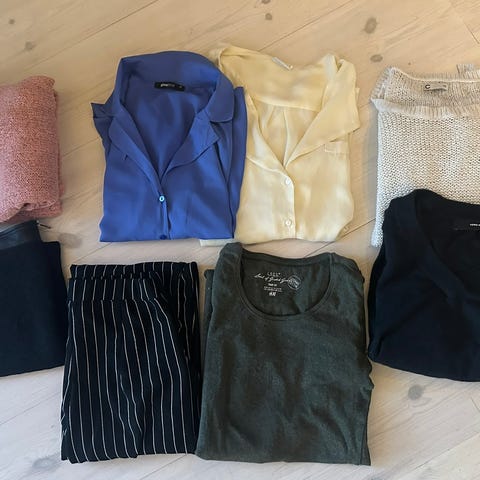 Klespakke str XS med 47 plagg selges samlet for 300 kr. Kanskje et par plagg i XXS. Noe ubrukt, det meste pent brukt, noen få plagg mer brukt. Jeans, onepiece, jakke, skjørt, bukser, kjoler, overdeler. Fra BikBok, Vero Moda, H&M, med flere. Hentes sentralt i Bodø eller sendes mot at kjøper betaler porto.