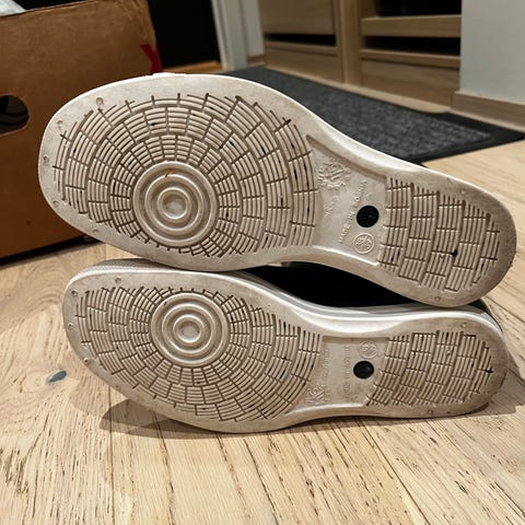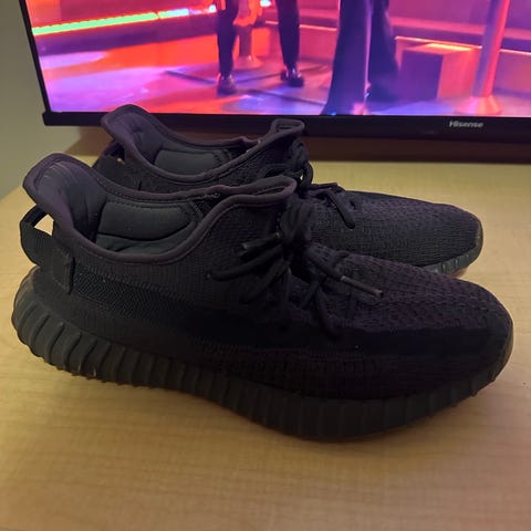 Yeezy Sneakers joggesko i størrelse 44. Skoene har snøring og en såle med tydelig mønster. Fargene er hovedsakelig hvit. Egnet som fritidssko. Ta kontakt ved flere spørsmål eller bud