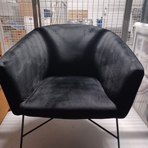 Lenestol i minimalistisk design og krom ben. Lett å flytte på og digg å sitte i. God bredde, så en ramler ikke ut av den. Bygger ikke så høyt, så tar ikke så mye av rommet. Avtagbart trekk. Småskader i metallet på benet, se bilde.