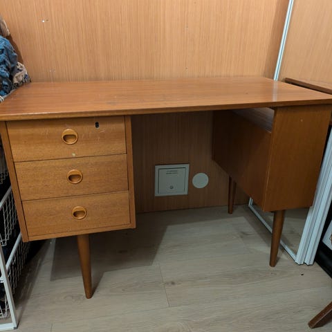 Bordet er vasket grundig, pusset for hånd med sandpapir og oljet tre ganger med Liberon finishing oil. Det er fortsatt noe skjoldet (men ser bedre ut i virkeligheten enn på bilde). Jeg tror skjoldene kan bli borte dersom man oljer med farget olje.