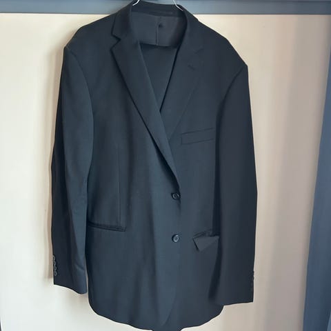 Dress(jakke str 54 regular + bukse str 34-32) selges. Ser veldig fin ut, men den trenger nok en vask/rens etter å ha hengt i leilighet det har blitt røyket i.