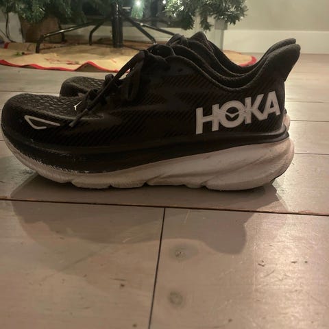 Hoka Bondi 7 løpesko i størrelse 40 (passer fint en strl 39-40) med svart farge. Egnet for løping - løpesko med god demping.