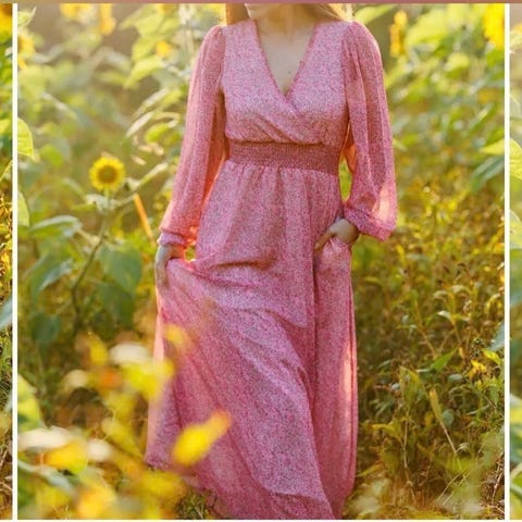 Denne maxikjolen har et nydelig print og er den perfekte kjolen til sesongens finere anledninger!