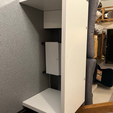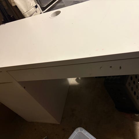 Hvitmalt pult, noen synlige bruksmerker. Kan hentes på St. Hanshaugen (første etasje).