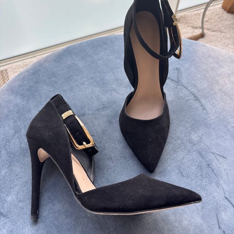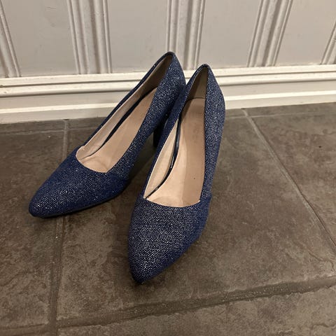 Bianco Hæler i blå farge, størrelse 38. Skoene har høye hæler og åpen tå, med dekorative detaljer foran. Egnet for formelle anledninger eller bruk der hæler ønskes.