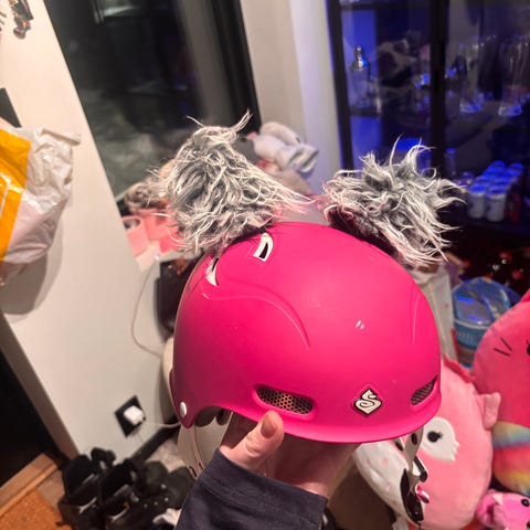 Salomon slalomhjelm str. 53-56 cm. Hvit med litt rosa. Kan også brukes på skøyter mm.
