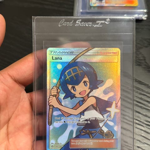 Selger pokemon kort trainer Diantha full art fra Sun and Moon i strøken tilstand.