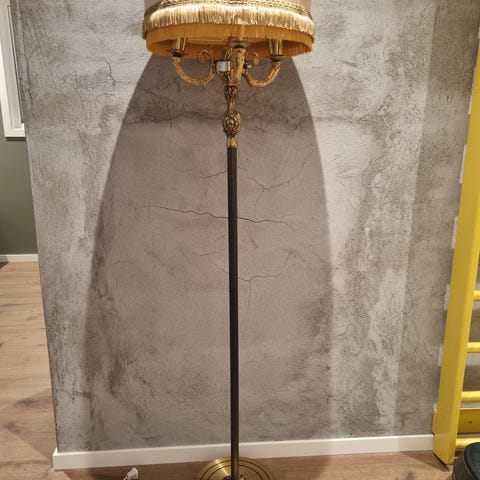 Retro gulvlampe av ukjent designer. Gir et fint og varmt lys i lesehjørnet! Høyde: 170 cm