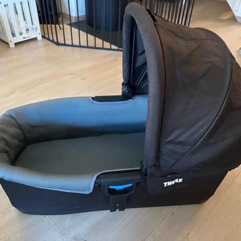 Meget pent brukt, svart Thule Urban Glide 2 bassinet. Medfølger regntrekk og myggnetting.