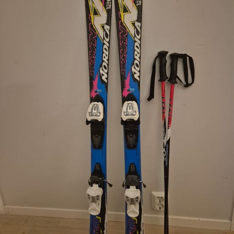 Selger et par Dynastar Speed Team alpinski med integrerte bindinger.