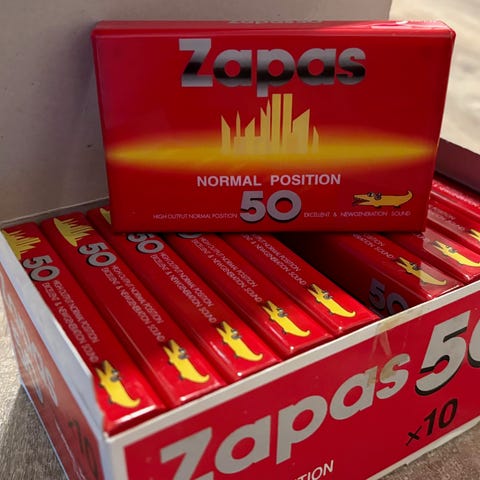 På bildet, selger jeg BASF D90 5 stk forseglede opptakskassetter i plast.