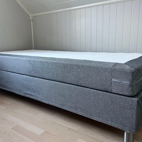 Både seng og overmadrass er lite brukt.