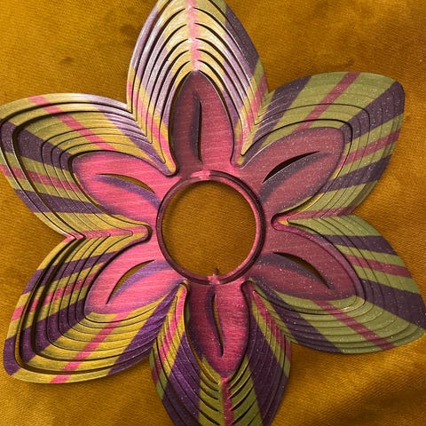 Jotex dekorasjonslysestake laget i rød metall. Lysestaken har plass til fire lys og har en bølget form.
