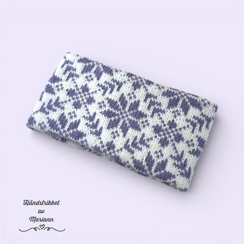 Kari-inspirert pannebånd i rosa og grå - strikket dobbelt slik at det varmer ekstra godt over ørene.