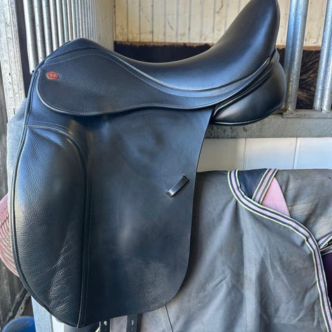 Christ Cloud Special + barbaksal med paneler i kompositt skum selges. Brukt fire ganger. Selges for 4500 kr. Str ponni. Opp til buksestørrelse 42. Passer både ponni og hest. Følger med gjord.