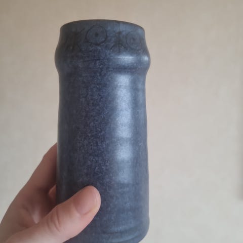 Dekorativ krukke signert Bjørn Ingar Eriksson (1927-2009). Høyde 9 cm, diameter på 10 cm