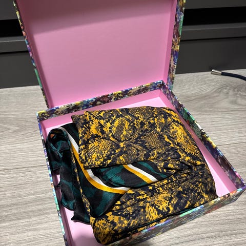 Helt nydelig sjal i friske farger. Som nytt. 100% silke.