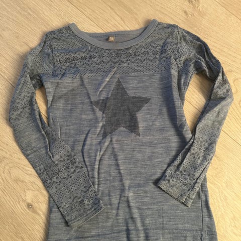 Kun brukt eit par ganger. Klart å få litt maling på ene armen, se siste bilde😊 det er ikke så synlig. Resten av ullskjorten har ingen merker eller skader🦋