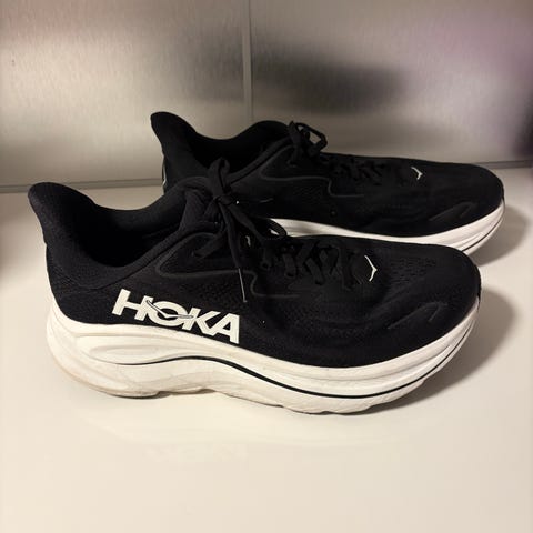 Hoka One løpesko i blå farge, størrelse 42 og 2/3. Egnet for løping, designet for komfort og støtte under trening og konkurranse. Bondi 8. et par bruksmerker men minimalt. Fremdeles inntakt hæl.