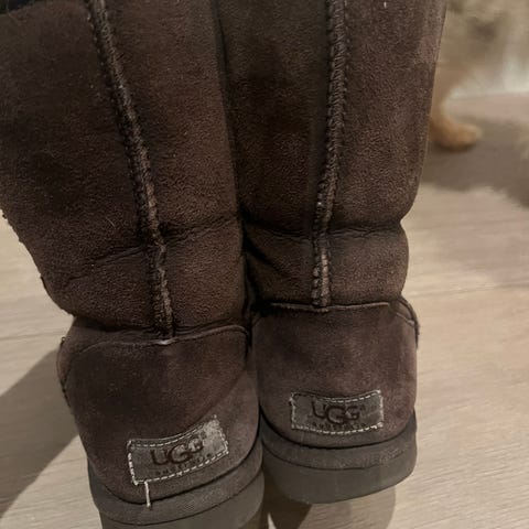 UGG støvler i størrelse 39, brun farge. Laget av semsket skinn med myk, isolerende fôr. Godt brukt men endel bruk igjen. Gode og varme