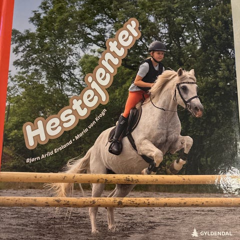 Gyldendal Hester og føll bok med illustrasjoner og fakta om hester og føll. Boken inneholder informasjon om hester, inkludert bilder og beskrivelser.