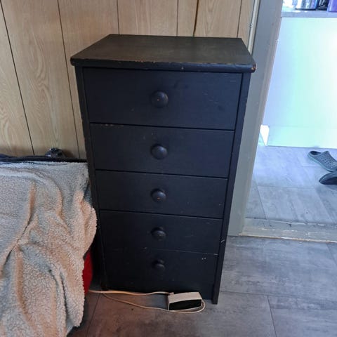Kommoda framstår som heil og solid, med fine håndtak og klassisk stil. Masse plass til klede, småting, papir, hobbyutstyr eller det du måtte trenge.