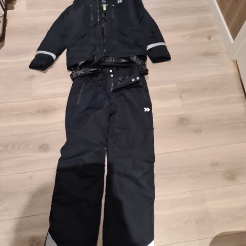 Flott vattert jakke og bukse fra EQPE. Justerbare seler på bukse, godt med lommer, også til heiskort, avtagbar hette. Egnet til alpint eller utelek. Str 158-164