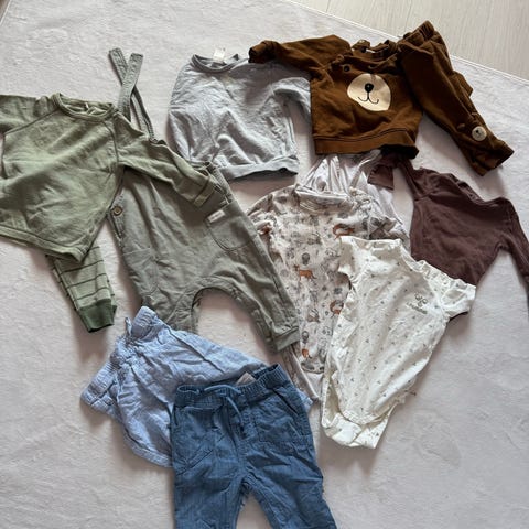 Selger 4 bukser i str 74, pent brukt! Grønn cargobukse er aldri brukt.