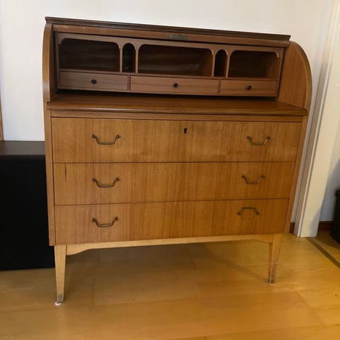 Pent brukt skatoll selges. Trenger et malingsstrøk. Skuffene virker perfekt. Fin arbeids/ leksepult med mange fine rom. Kommode under. Heltre.