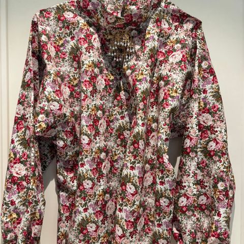 Nydelig rosa blomster skjorte i bomull fra Pascal. Str 34/36. Veldig fin snitt. Mansjettknapper til pris 399 kr følger med! Passer til mange typer bunader/festdrakt. Nypris: 2500. Ubrukt.