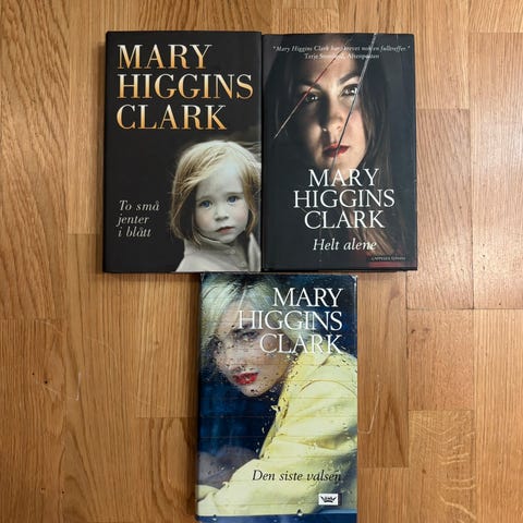 Innbundne, "Alice Lacey", (Har noe bruksmerker på papir coveret, se bildene), 30kr, "Lille Lizzie vender tilbake" 35kr, "Min tiden er natten" 35kr, av Mary Higgins Clark. Selges samlet for 100kr.
