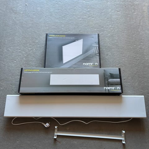 Selger to helt nye panelovner fra Namron 1000W. Kjøpt til nybygg, men vi kjøpte varmepumpe så disse ble aldri montert.