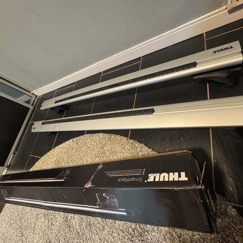 Thule takstativ med tverrstenger i svart. Passer til montering på Volvo v90 tak for transport av ekstra last. Vi har brukt dette på en Volvo v90 og det kan hende det passer for andre biler også men har ikke sjekket opp i hvem. De har vært brukt til en Volvo v90 2018 årsmodell! Pris kan diskuteres ved rask handel👍
