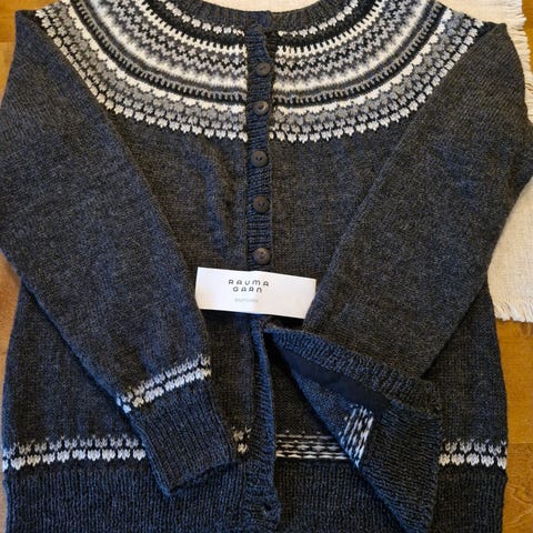 Strikket genser. Str.M. Villmark. Tinkaneule av Heli Nikula.