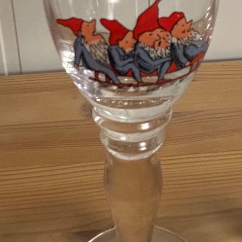 To glass fra Magnor. Nissemotiv fra nisseservise til Porsgrund.