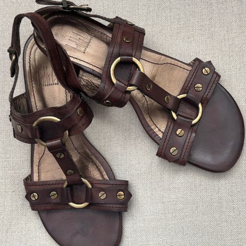 Merket er JF. Er svært lite brukt. De er skinn under og er dermed ikke glatte å gå med.