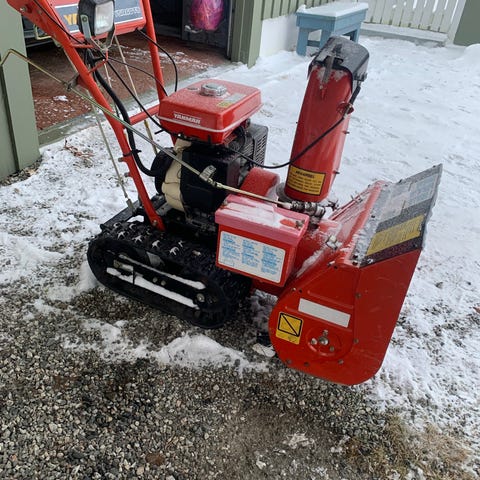 Selges da den har stått lagret og blir ikke brukt. Med litt service og stell er dette en 11 hk snøfreser med 230V selv start motor. Startet og gikk da den ble lagret bort. Mulig punktert ett dekk. Starter på startgass. Trenger forgasser rens så er den igang igjen. Selges som rep objekt/ dele snøfreser da motor og det meste virker som d skal.