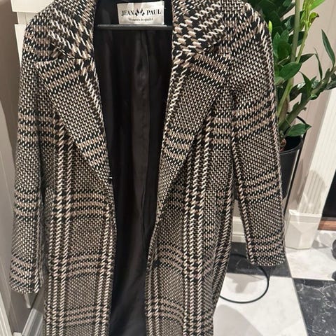 Hvit Jean Paul Pile kåpe i myk teddykvalitet. Kåpen har trykk knapper, lommer, innvedig fôr, og liten metallbadge med logo på lommen.