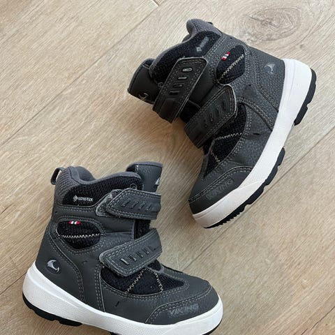 Viking toasty vintersko i str 24 selges. Skoene er fint brukt, men har noen bruksmerker som vises på bildene. Vanntette og varme sko. En favoritt hos oss.
