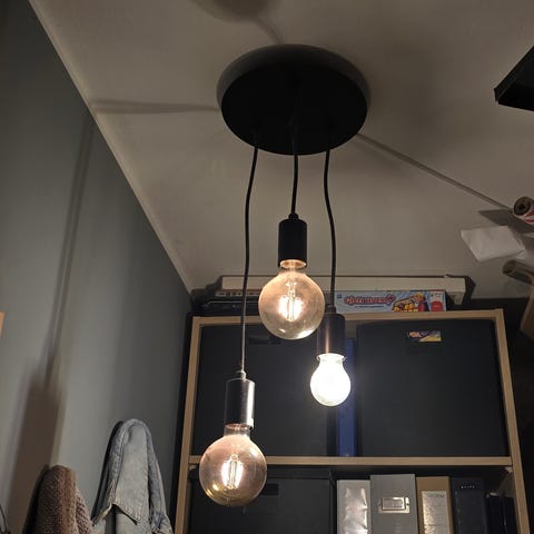 Selger en pent brukt lampeskjerm fra Ikea. Dette er den største på 59 cm og 35 ca høy.