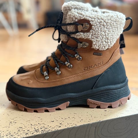 Skoene ligger fortsatt i skoesken og skoene er aldri prøvd på ute.
