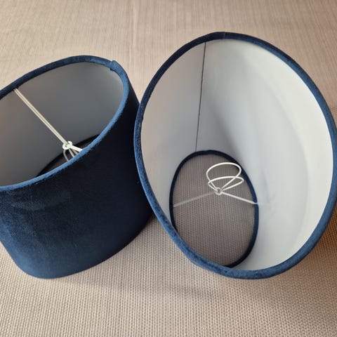 To stk offwhite lampeskjermer selges. Diameter på det smaleste 12 cm. På det bredeste 24 cm. Høyde ca 22 cm. Brukt på toarmet "tiviolilampe". 80 pr st. 150 for begge.