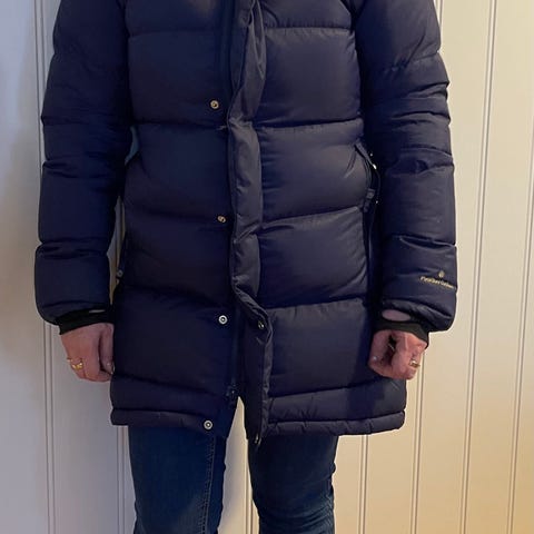Oppleves stor i størrelsen. Jeg er normalt str 36. Kjøpte i str 34. Ubrukt. Har altfor mange dunjakker & dunkåper 🫣