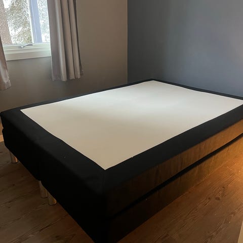 Rammemadrassene sto på hytta når jeg kjøpte den vet derfor ikke hvor gamle de kan være... De er ikke falmet i fargen. Farge koksgrå. . Jeg har ikke noen plass til de så må fort ut!! Vi har liten hund(hvis allergi) 75 cm bredde lengde 2 meter høyde 46 cm. GIS BORT så fort som mulig 😊